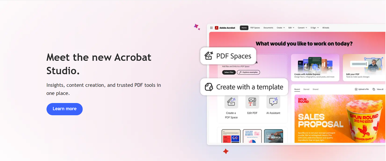 - Acrobat Studio for teams: $27.74/month per license. Includes AI Assistant, PDF Spaces, and Adobe Express Premium.