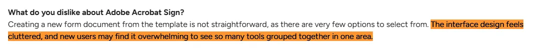 Adobe Acrobat Sign requires significant time investment before users feel comfortable. A G2 review from a staffing firm noted: