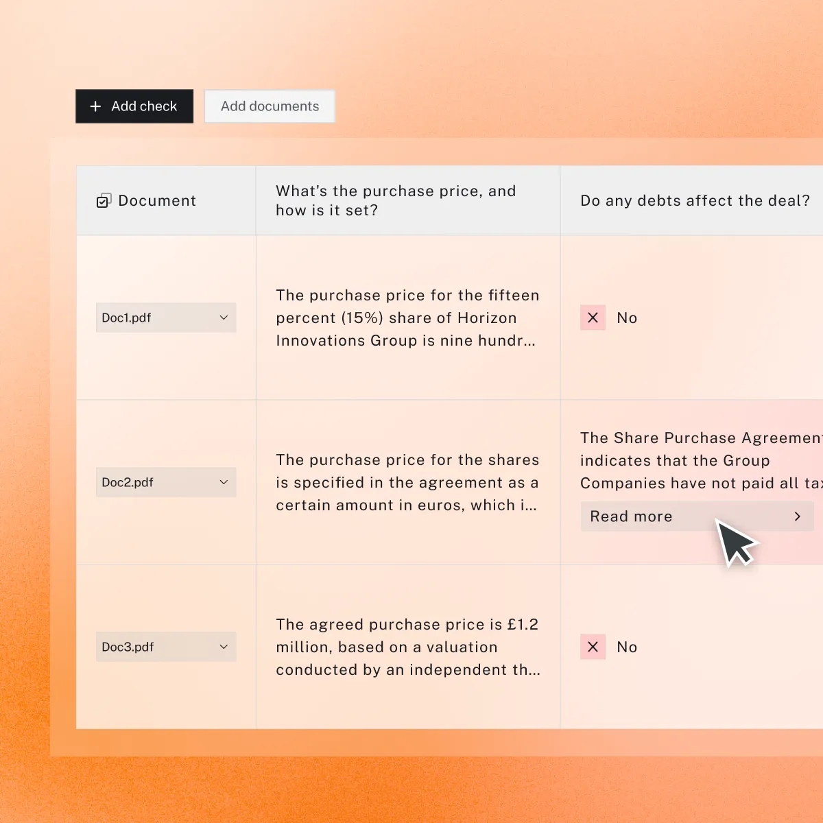 The AI automatically extracts critical terms and generates summaries, giving you instant visibility into agreement details.