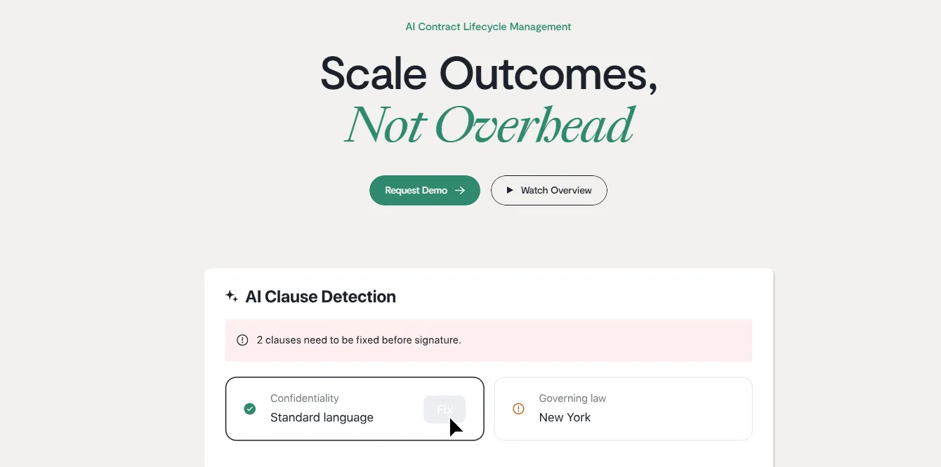 - Integrates with existing CLM systems rather than replacing them entirely