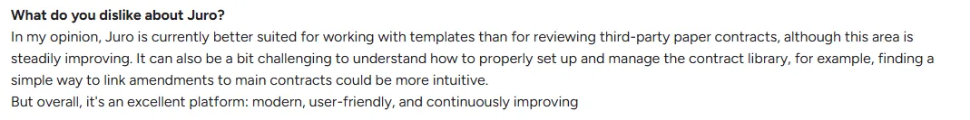 - Some users find it "better suited for working with templates than reviewing third-party paper contracts"