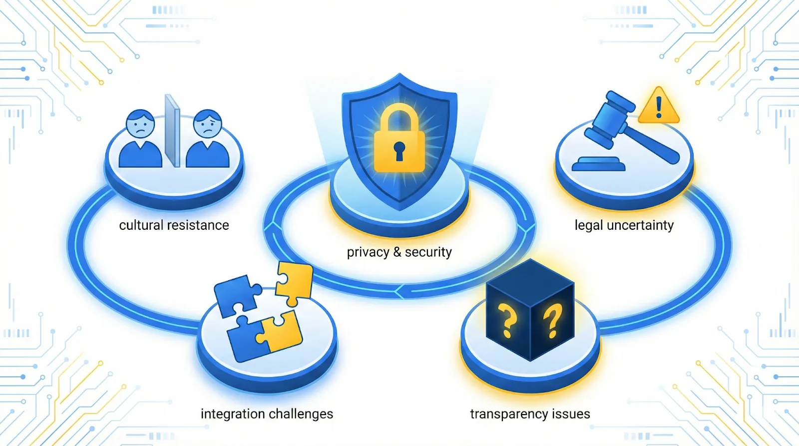 Signeasy addresses the five critical barriers to AI adoption: data privacy risks, legal uncertainty, transparency concerns, integration challenges, and cultural resistance.