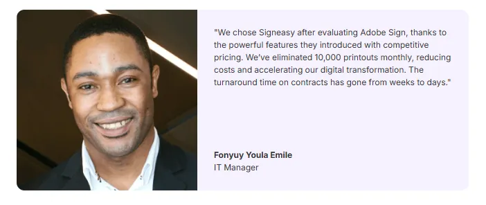 Plus, its intuitive interface, mobile-first approach, and fast, reliable customer support make onboarding a breeze. For growing teams, Signeasy simply delivers more value with less hassle.