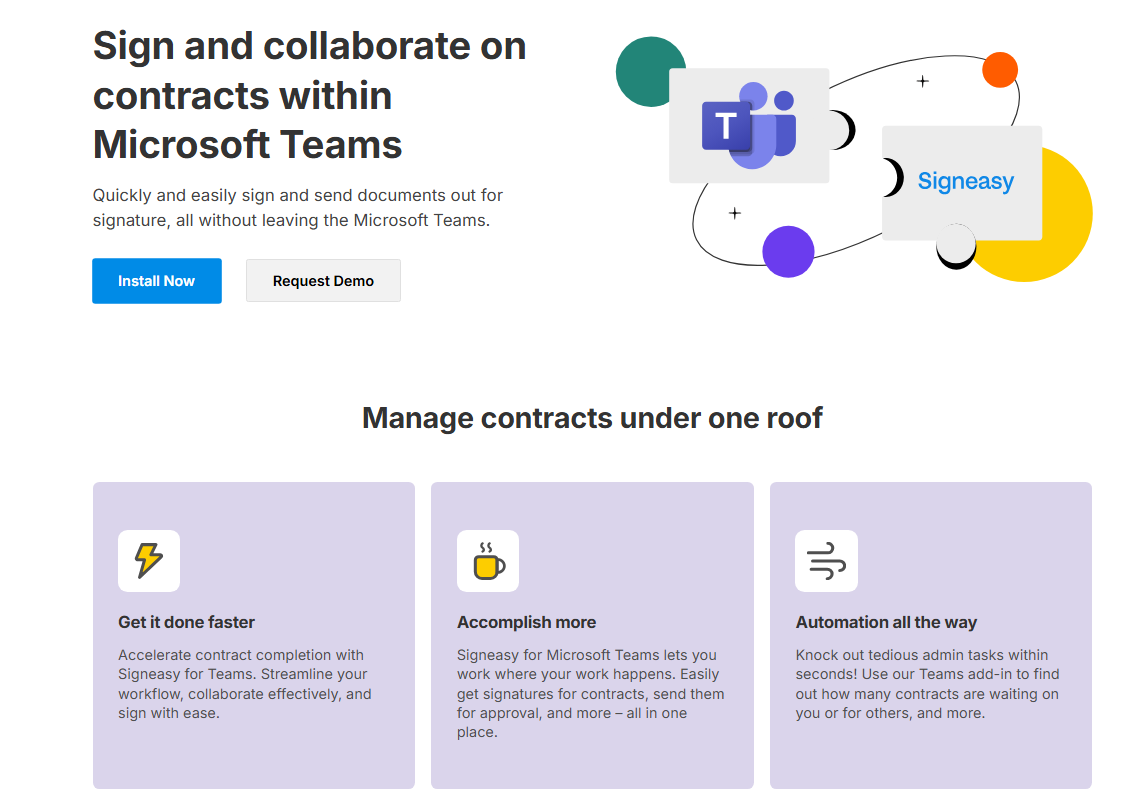 This keeps legal, sales, and finance aligned while maintaining version control. Teams using Signeasy for Microsoft Teams or similar integrations can review, edit, and approve documents without switching platforms.