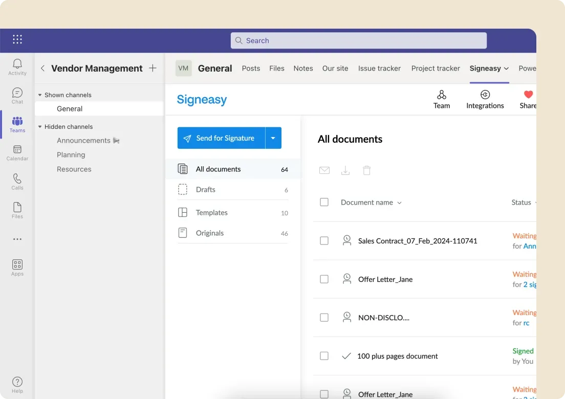 Signeasy brings these practices together in one contract management platform. Healthcare teams get HIPAA-compliant eSignature workflows, AI-powered contract insights, and integrations with Microsoft SharePoint, Teams, and Google Workspace.