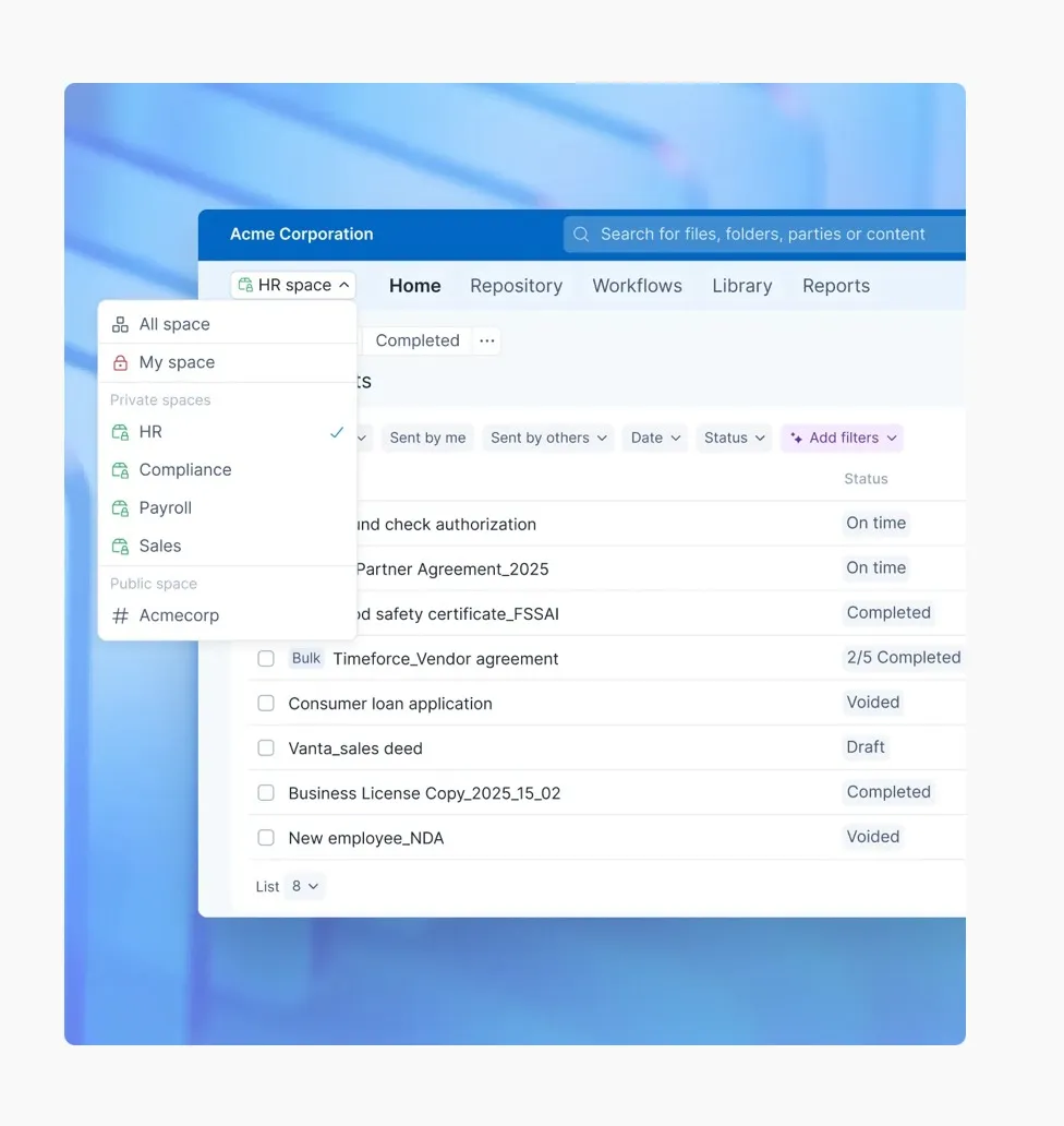 - Reduces informal workarounds with external parties: Vendors and customers can sign without account setup or complex steps. This reduces delays and avoids side agreements or email-based approvals that weaken compliance visibility.