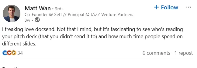 Users love DocSend to share pitch decks | Source: LinkedIn