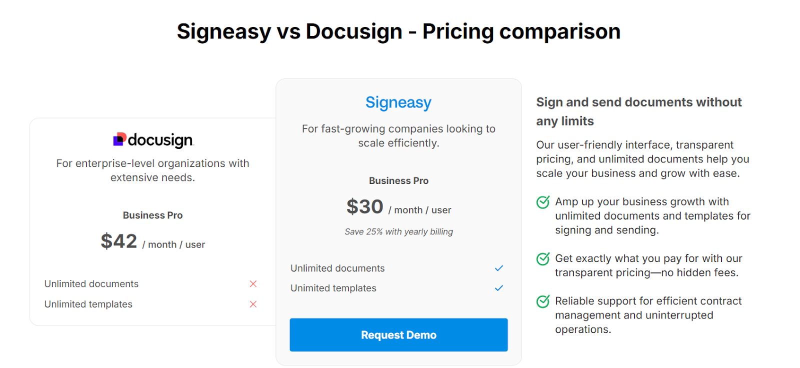 Signeasy's pricing is straightforward, with no surprise charges for features that should be standard.