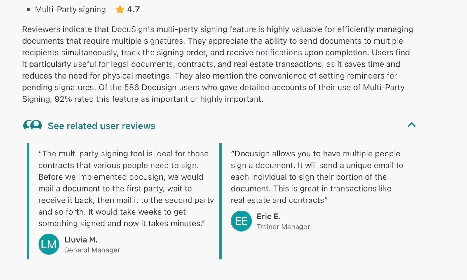 Anyone who’s dealt with documents that need more than one signature knows how messy it can get. One person signs, sends it back, someone else forgets, and suddenly weeks are gone. Reviewers on G2 talk about this exact pain and how Docusign fixes it.