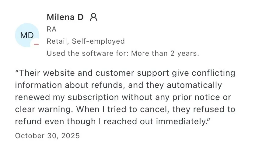 Some long-term users say pricing issues show up during renewals and cancellations. Reviews describe subscriptions renewing automatically without clear advance notice, followed by confusion when trying to reverse the charge.