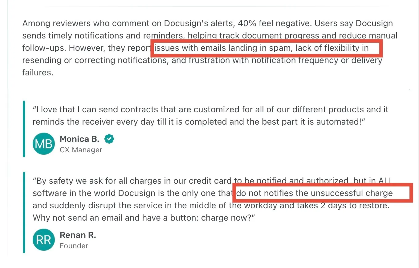 The takeaway from this feedback is pretty clear. Docusign handles basic reminders well, but once notifications need more flexibility or reliability, cracks start to show.