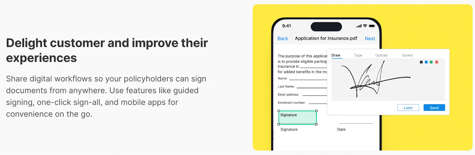 Policyholders expect fast, user-friendly, and digital-first experiences. Mailing paperwork or requiring in-person signatures can frustrate customers and lead to drop-offs. eSignatures provide a seamless, intuitive signing process that aligns with modern expectations, improving satisfaction and retention rates. This includes the ability for customers to securely sign pdf online for new policies or claims from their preferred device.