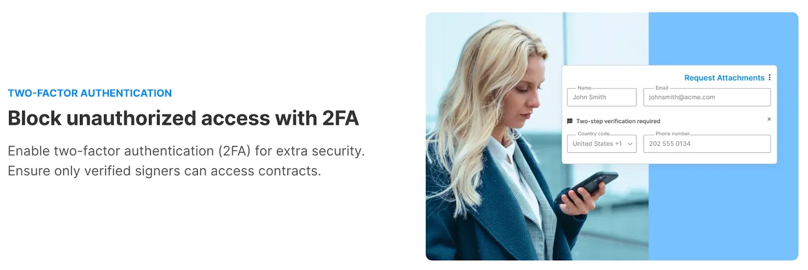 - Signer verification: Identity verification methods, such as multi-factor authentication or knowledge-based authentication, ensure the right person is signing the document.