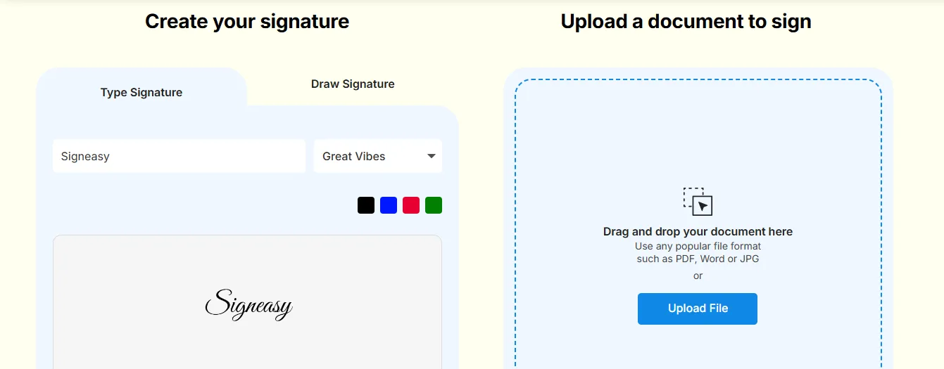 Before you sign any PDF, you’ll need a digital version of your signature. With Signeasy, this takes less than a minute and works on any device. You can create your signature in three simple ways: