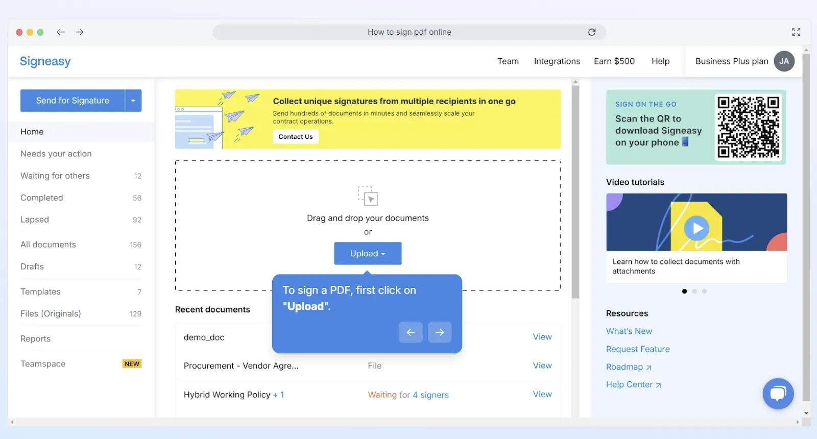Here is how Signeasy helps businesses and individuals in eSigning PDFs: