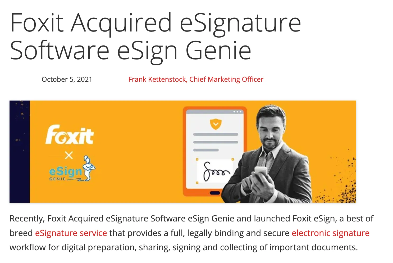 eSign Genie is a cloud-based eSignature solution that allows businesses and individuals to create, send, sign, and manage documents digitally. It was acquired by Foxit in 2021 and rebranded as Foxit eSign.