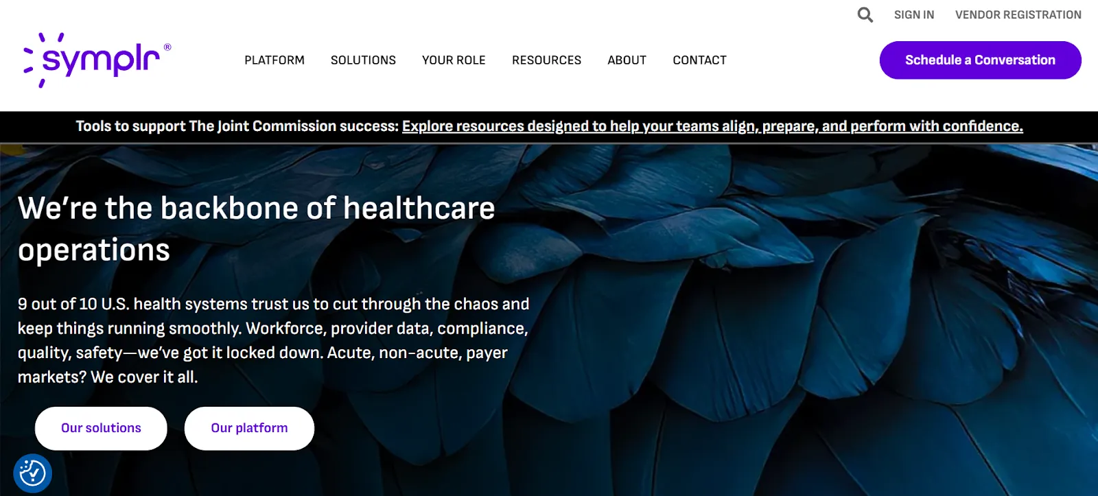 Alt: symplr website, a comprehensive platform for healthcare operations