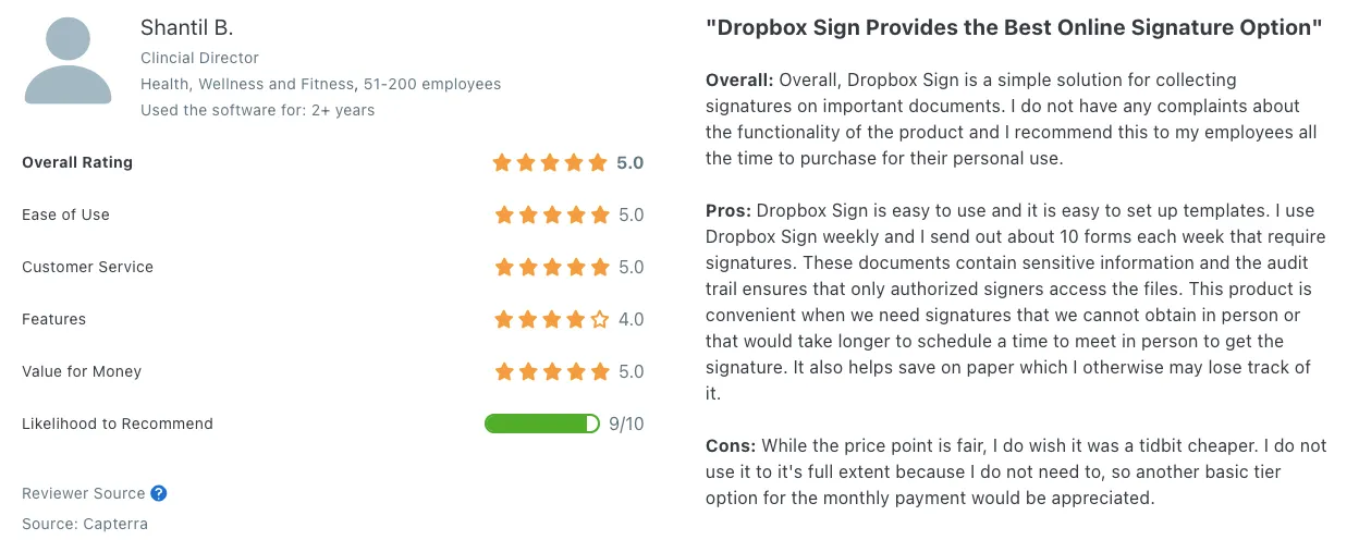 Dropbox Sign is known for its simplicity and ease of use, making it a popular choice for small to medium-sized businesses and professionals who need a reliable and secure eSignature solution.