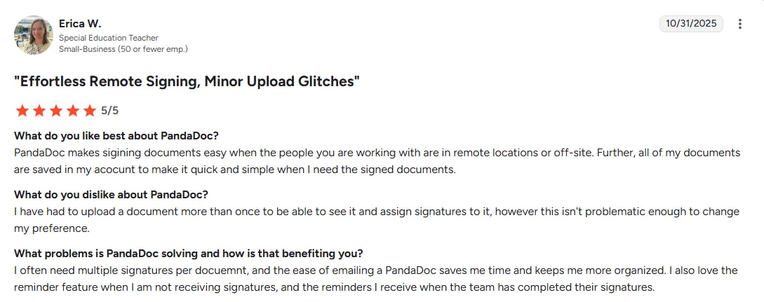 - Intuitive interface: The straightforward design makes creating, sending, and signing documents simple for healthcare staff and patients. Users can complete signature requests without complicated steps or extensive training.