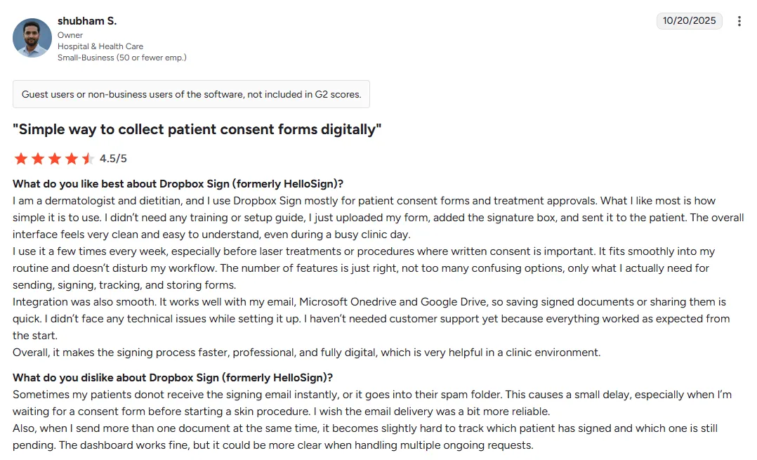 Dropbox Sign appeals to small and medium-sized healthcare practices that need straightforward, reliable eSignature tools for healthcare without complex setup.