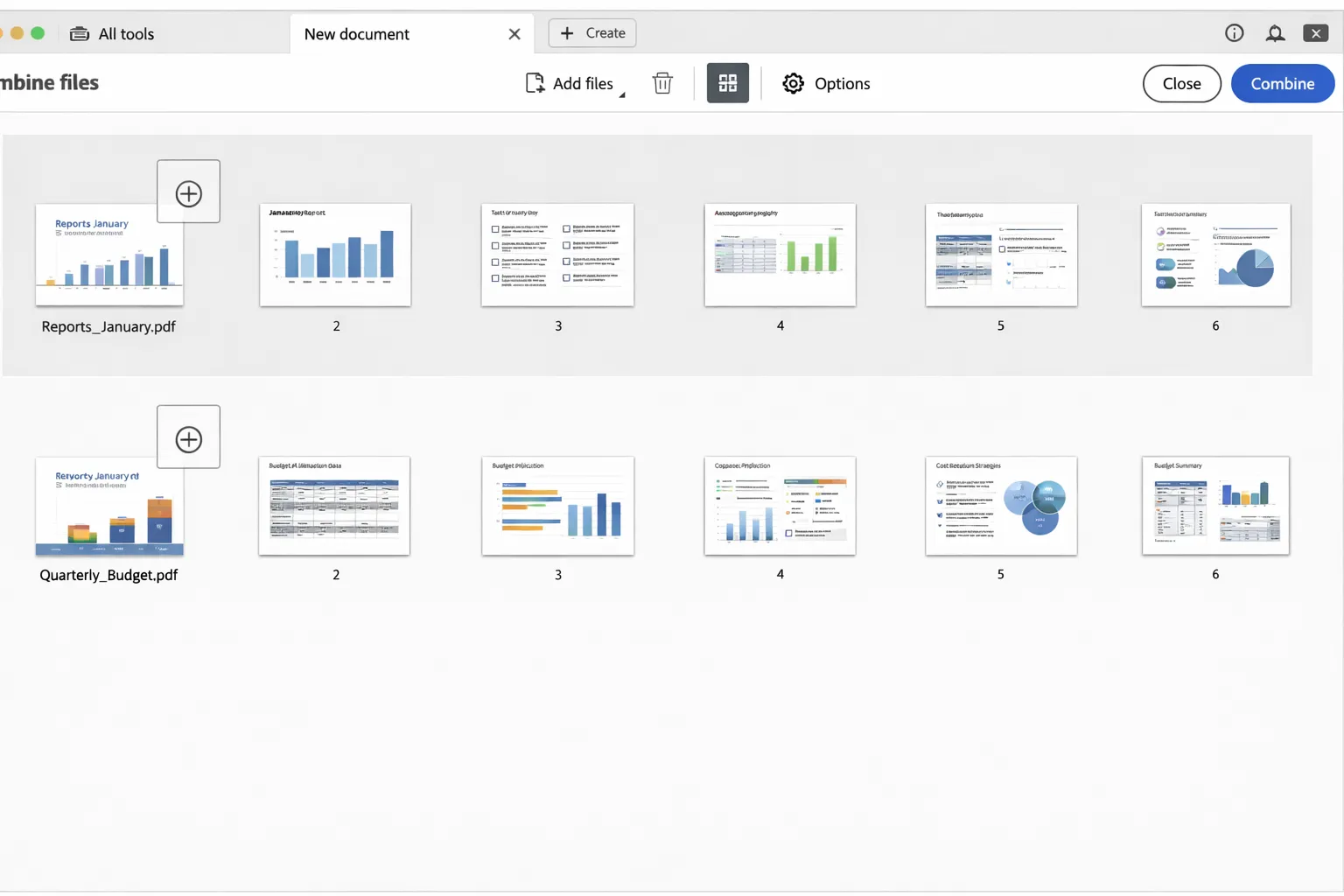 - Click “Combine” to merge the files. Acrobat processes the documents and creates your combined PDF.