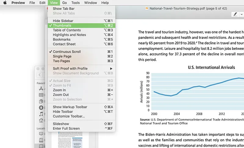 - Step 2: Display the thumbnail sidebar by clicking ‘View’ in the menu bar, then selecting ‘Thumbnails’.