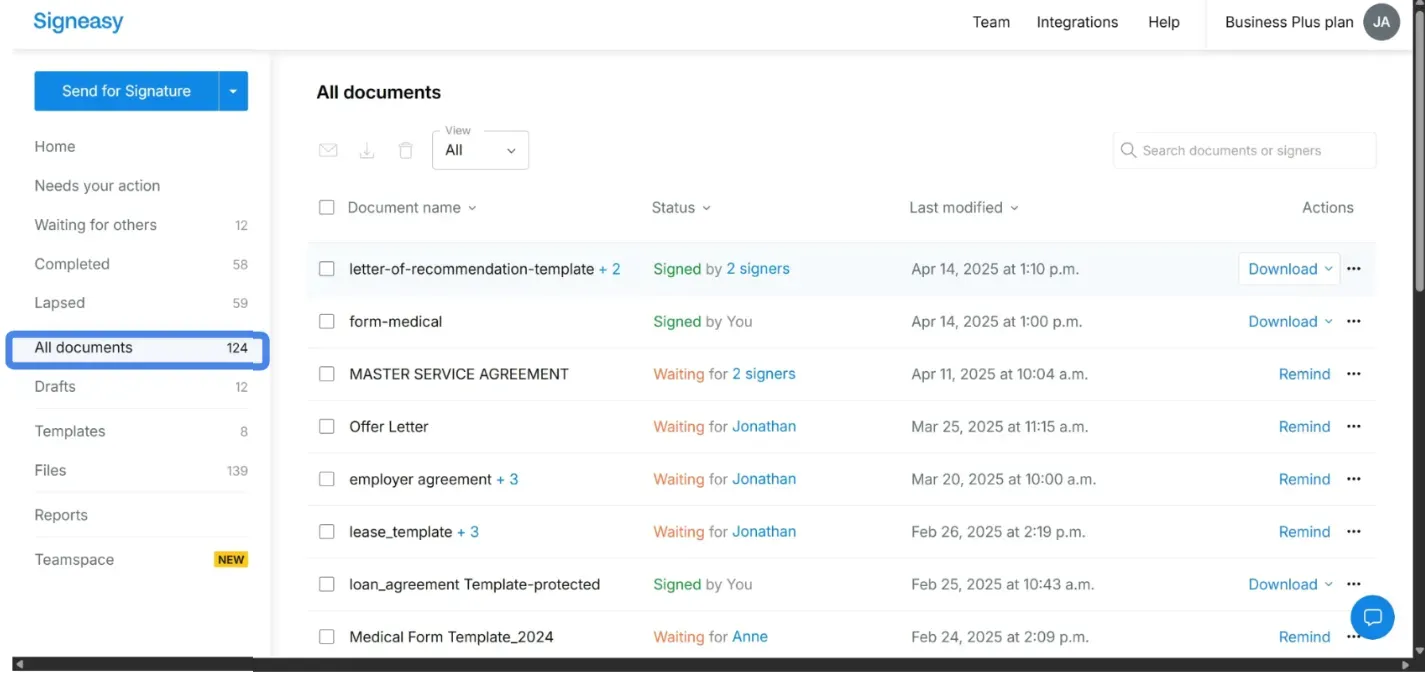 For teams and businesses, Signeasy provides administrative controls that let you manage document workflows while maintaining security standards. These controls support compliance requirements without adding unnecessary complexity to everyday tasks.