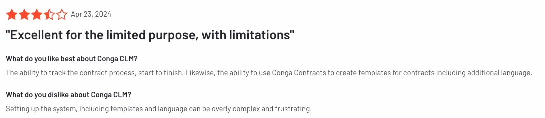 Conga is an end-to-end CLM software that significantly shortens contract cycle times from days to minutes. Also with Conga’s integration with Salesforce, users can harness powerful features directly within the Salesforce interface.
