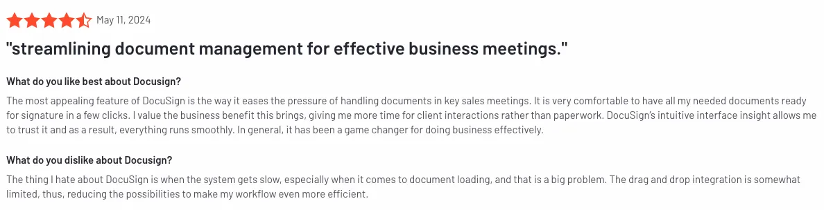 - Several integrations: Docusign provides 900+ integrations for teams, ensuring streamlined data across applications.