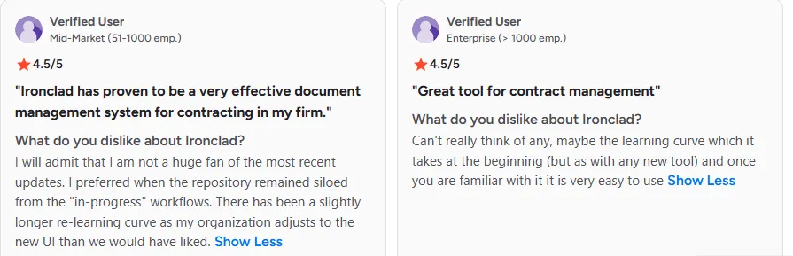 Ironclad is widely praised for its comprehensive features, especially for enterprise-level contract lifecycle management. But, it’s not perfect for every organization.