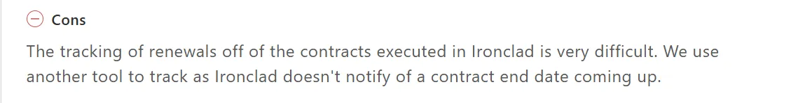 However, a few users noted that tracking a contract can be difficult on Ironclad.