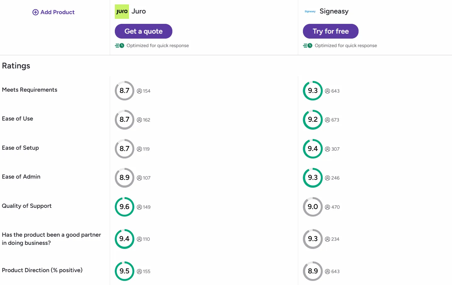 Juro and Signeasy: Feature comparison summary