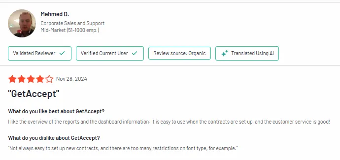 Support options: GetAccept offers a help center and chat support across all plans. Access to a dedicated customer success manager comes at an extra cost.