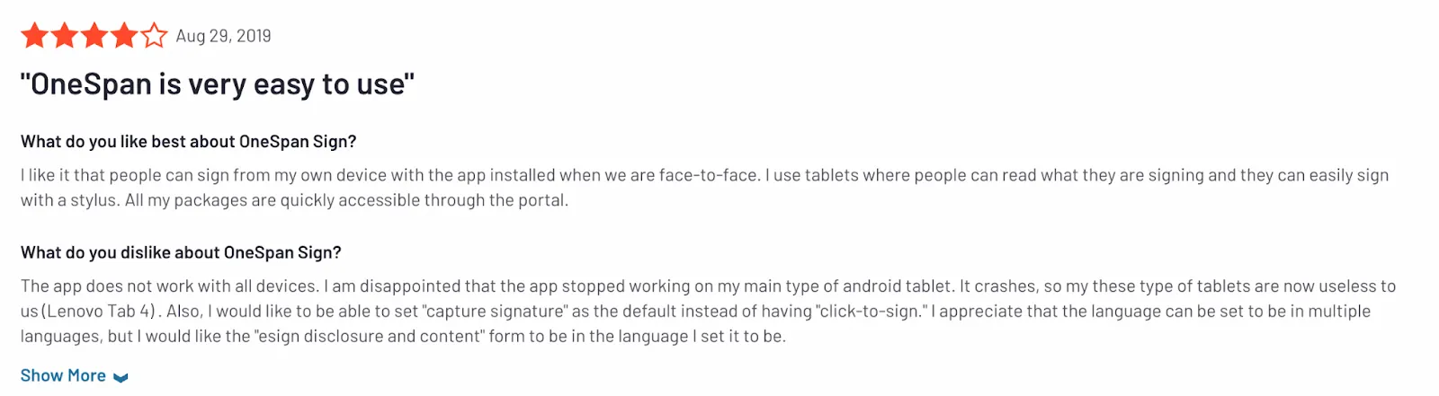 - Ease of use and intuitive design: Several users appreciate OneSpan’s user-friendly interface, noting that it’s easy to navigate and intuitive. This is particularly important for teams that want a straightforward tool for e-signatures without a steep learning curve.