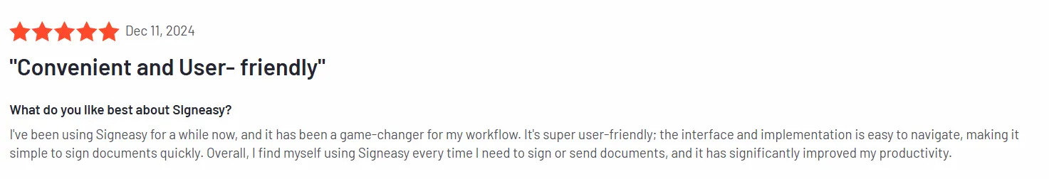 - User-Friendly Interface: Signeasy is praised for its intuitive design, making it easy for users to navigate and utilize its features without extensive training.