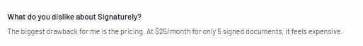 - While Signaturely is great for basic eSigning, scaling teams find its limited document requests, lack of advanced contract management, no mobile app, and inconsistent support restrictive.
