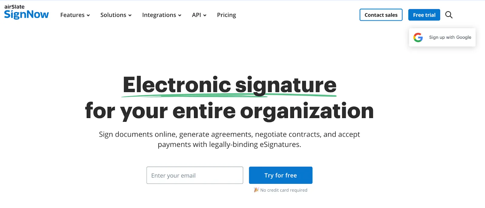 airSlate SignNow is a feature-rich alternative to Signaturely, especially for businesses that need scalability and more robust signing workflows. It offers essential eSignature tools like unlimited users, unlimited templates, basic fillable fields, audit trails, automated reminders, and in-person signing with multiple signers, even in its base plans.