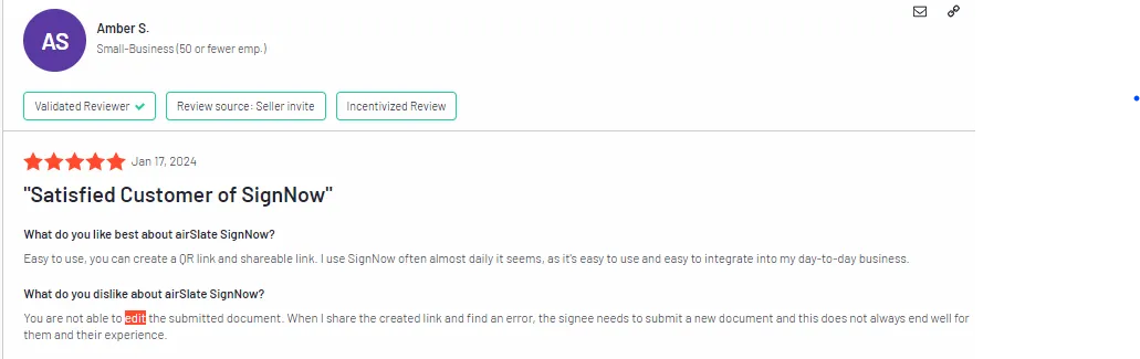 If you frequently work with templates, SignNow can feel limiting. Several users on G2 reported that when changes are needed to the templates, they have to start from scratch, as the tool lacks smarter features for template management.