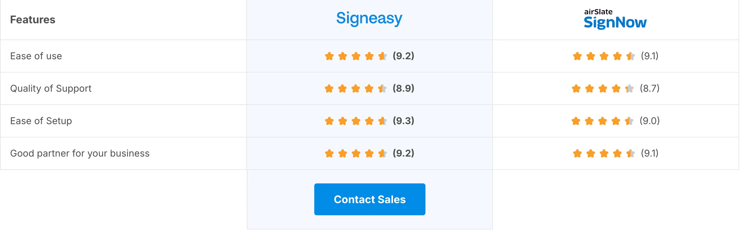 - If your business is scaling fast, Signeasy grows right alongside you. With flexible plans, reliable support, and advanced features built in, it’s a natural step up from SignNow.