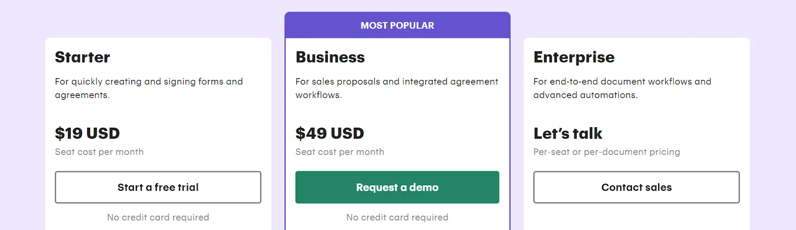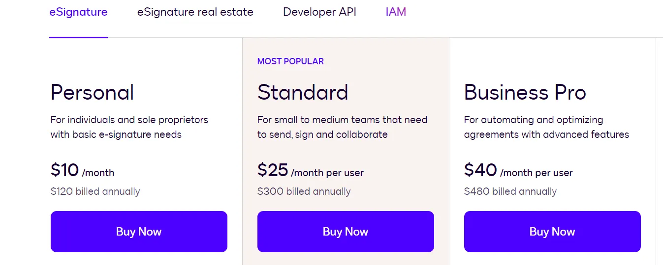 - Transparent pricing with no hidden costs: Signeasy's pricing offers straightforward and competitive plans, making it cost-effective and scalable for both small and large teams.