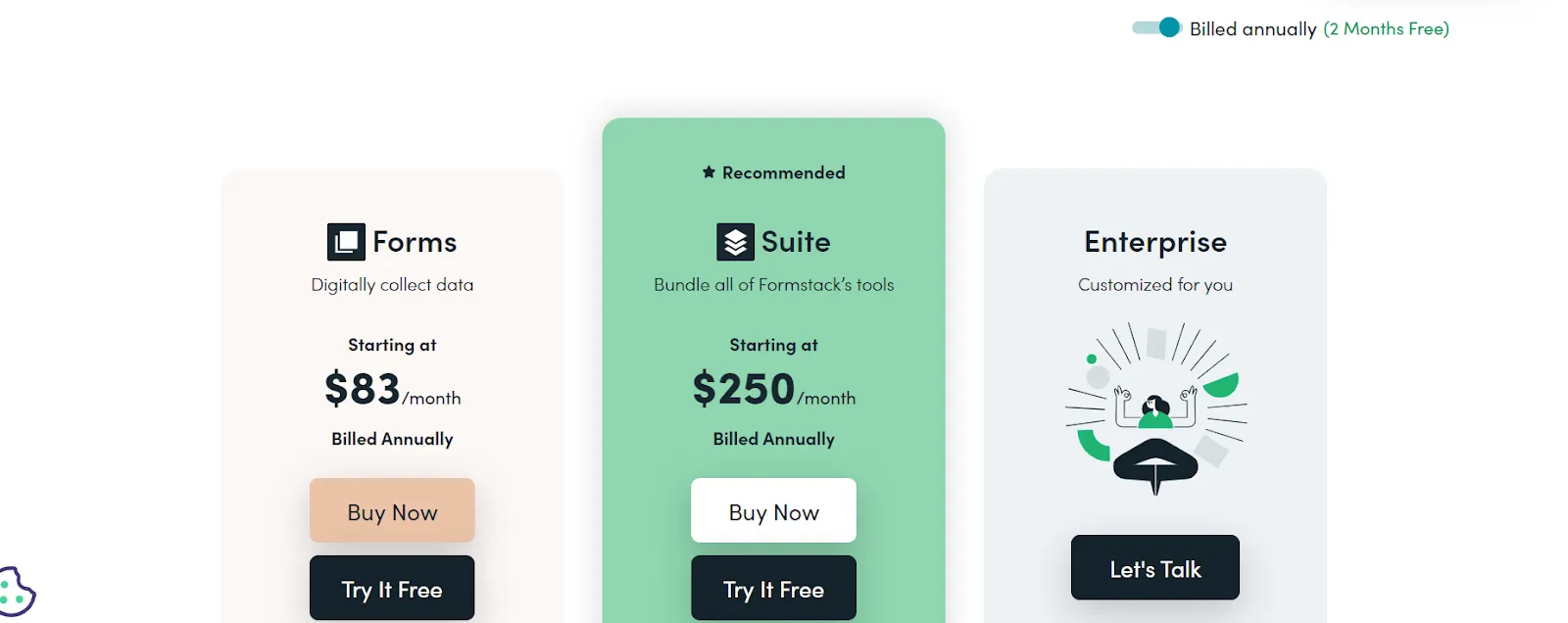Pricing: Plans start at $83/month, billed annually.