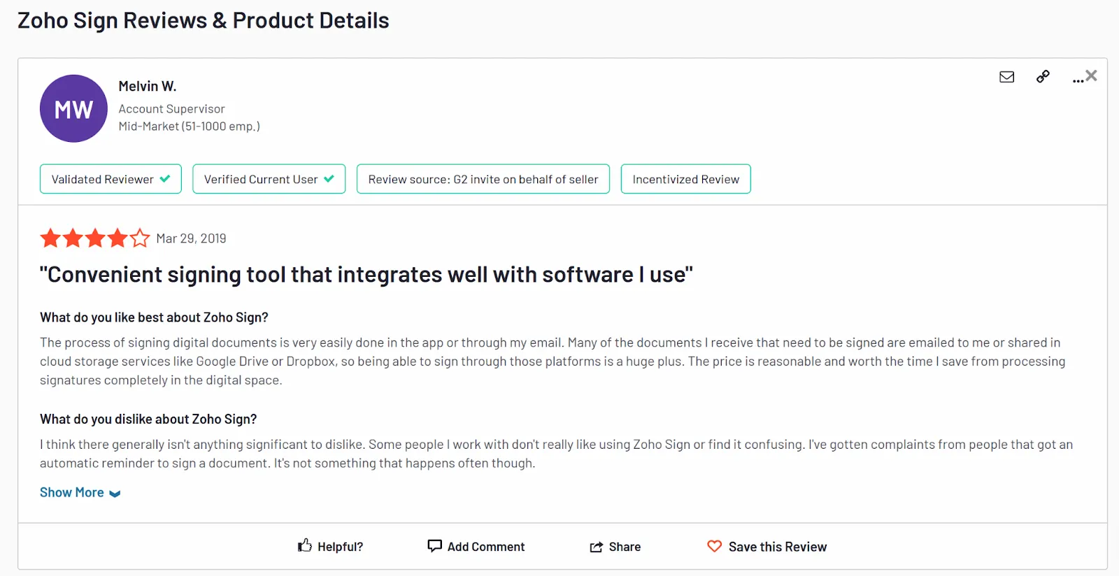 - Third-party review platforms: We reviewed user feedback from reputable third-party platforms like G2 and Capterra. These platforms offer real user experiences, helping us gauge the effectiveness and value of Zoho Sign from a variety of perspectives.