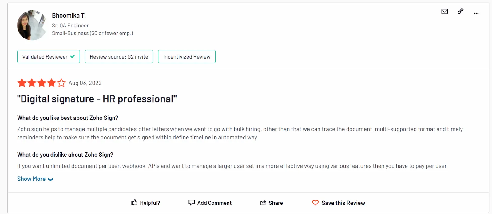 Now that we’ve covered Zoho Sign’s pricing options, let’s dive into what users have to say. Here are some reviews and feedback from real users about their experience with Zoho Sign’s pricing.