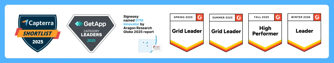 Customers consistently placed Signeasy as a Leader and Momentum Leader on G2 across all four quarters. We were named to Capterra’s Shortlist and recognized as a Category Leader on GetApp.