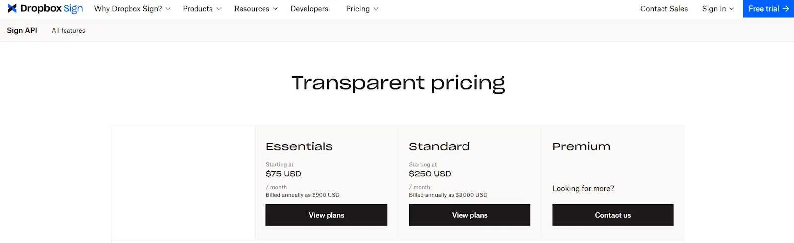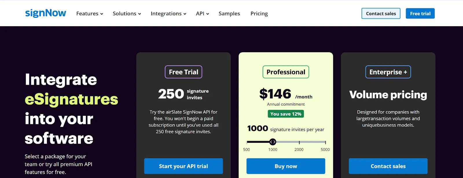 Pricing: The annual professional plan costs $146/month for up to 1000 signature invites per year.