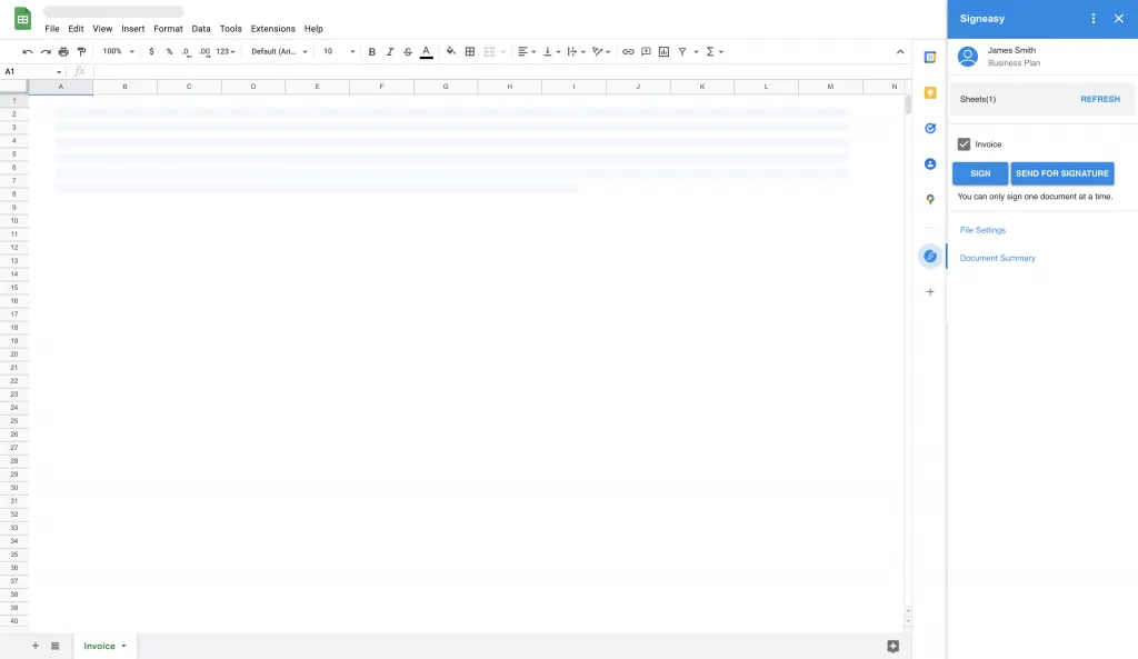 Signeasy’s Google Sheets integration lets you get instant approvals and signatures for your invoices by raising a request within the spreadsheet.