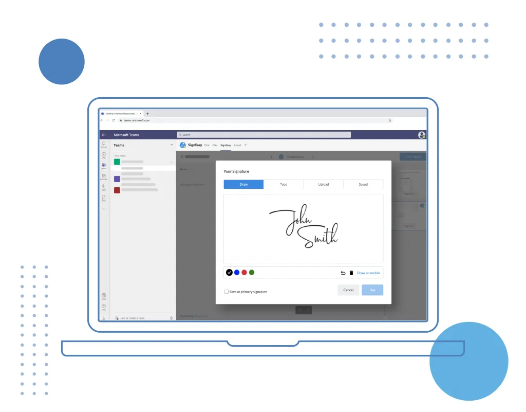 Users will be able to sign and send requests for signature from the Channels in MS Teams.