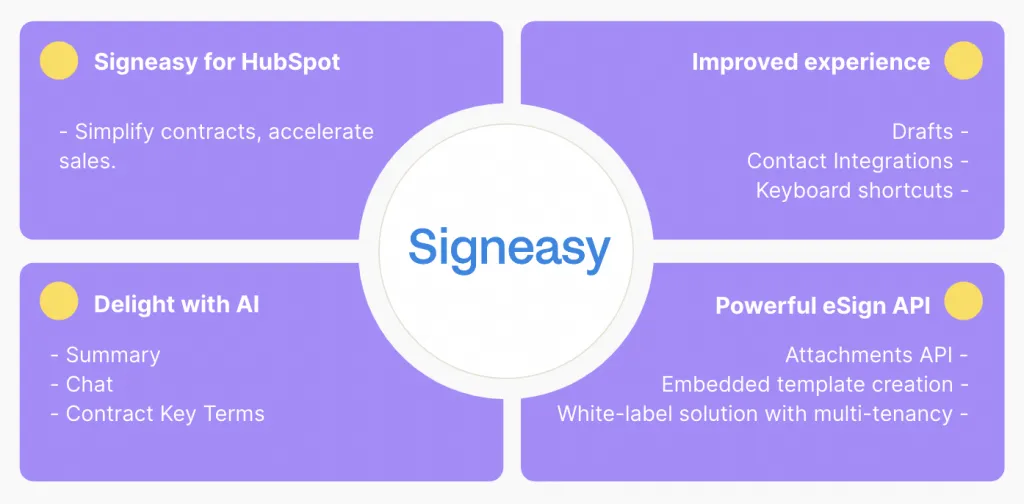 We can’t wait for everyone to experience the renewed Signeasy that’s more powerful, reliable, and performant starting in August. We will deliver some exciting features, including the ability to save workflows as drafts, HubSpot integration (join waitlist), edit in-flight documents, enrich our APIs, and offer AI-powered features (join waitlist) to streamline your contract workflows. Also, the app would be redesigned for a better signing, sending, and tracking experience—2023 promises to be a good year.