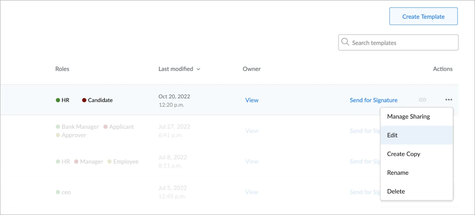 Until this release, even the much-loved Templates feature had a limitation. Businesses use Templates to standardize terms, formats, and contractual details across the organization, which need to be updated from time to time. In such scenarios, even for minor updates in a Template, the only way was to create a new Template with the updated version of the document and add all the same fields again one by one. This becomes time-consuming when it comes to lengthy contracts with tens of pages and hundreds of fields.