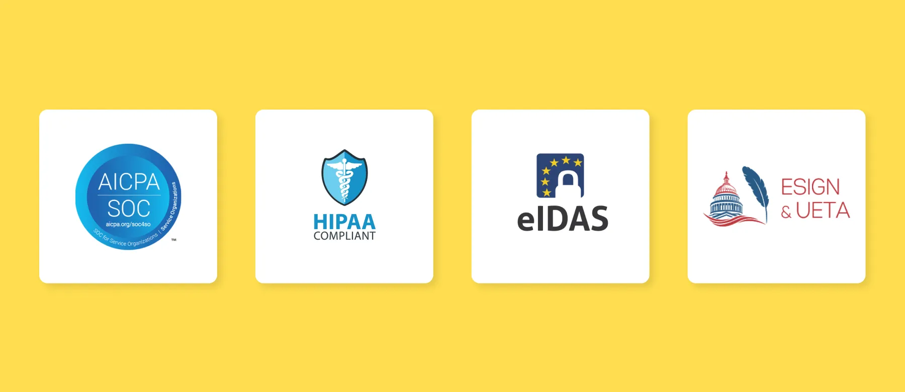 Our software complies with HIPAA, SOC 2, and international acts and regulations, such as ESIGN and eIDAS.